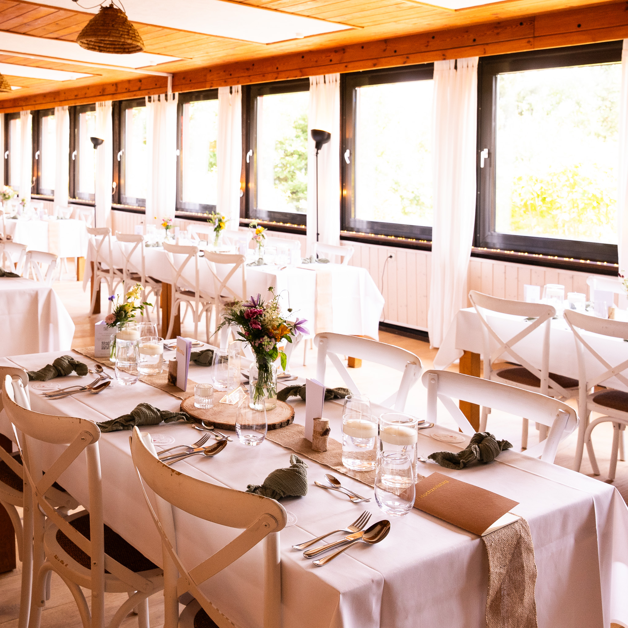 Unsere Location verbindet Gemütlichkeit mit Eleganz:Großer Wintergarten mit Panoramablick – bis zu 120 Sitzplätze (mit Stehtischen bis zu 150 Personen)Offener Kamin & Holzöfen – Wärme und Wohlfühlambiente, auch im WinterBar- und Buffetbereich – perfekt für gesellige StundenWeitläufiger Biergarten & Spielwiese – mit Bäumen, Lichterketten und Lichtflutern für stimmungsvolle Sommerabende